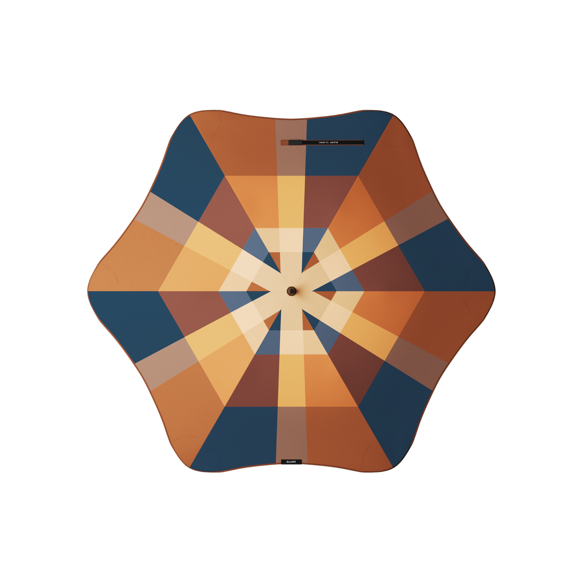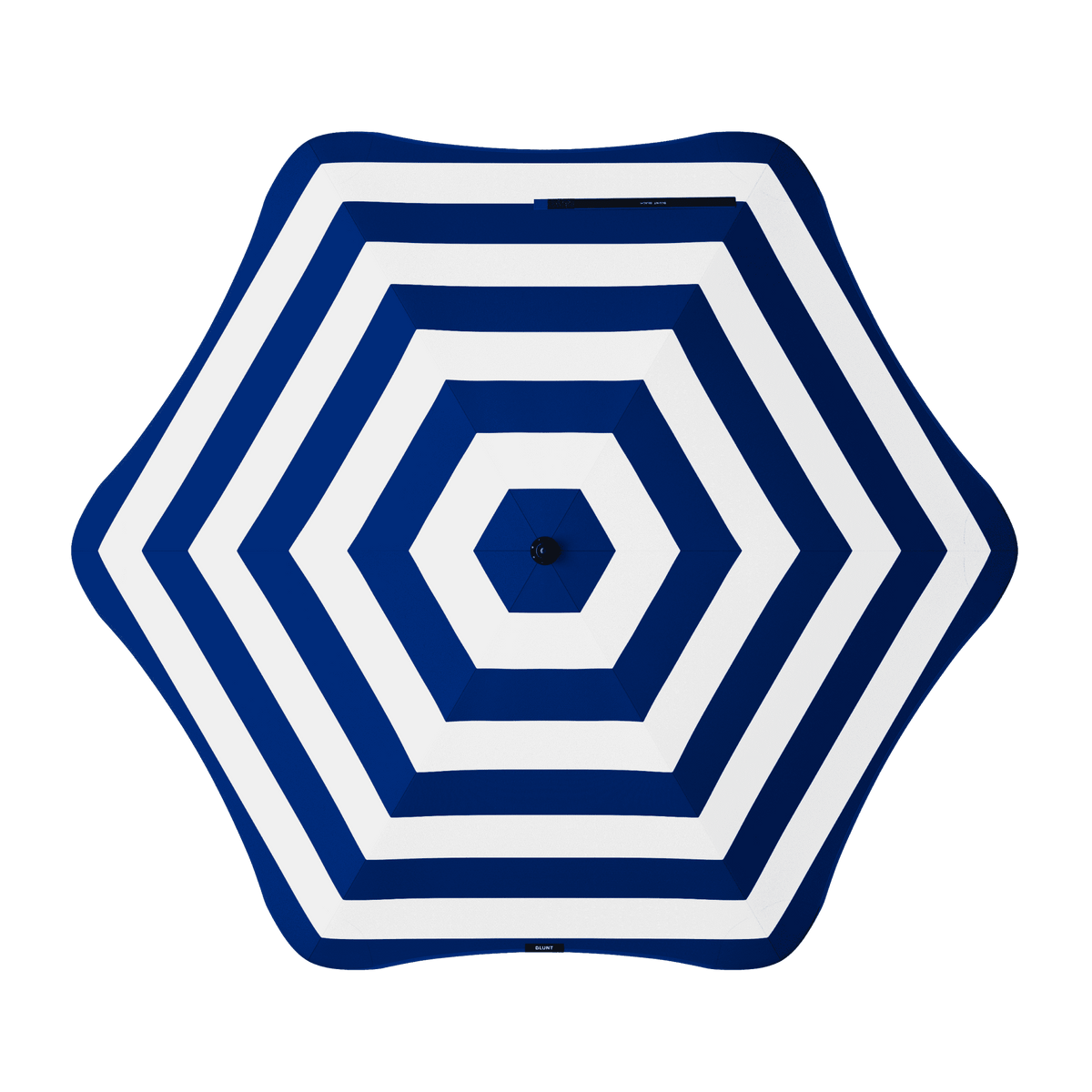 The BLUNT umbrella frame exhibits a unique strut mechanism, pushing maximum radial force out towards the ribs resulting in our highly tensioned canopy.